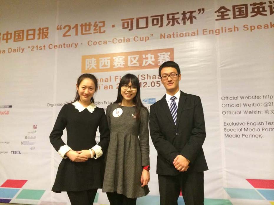 On December 5th, Final Competition of Shaan’xi Province for the 20th“21st Century Cup” National English Speaking Competition was successfully held in the Science Center of Xi’an Jiaotong University. The contest was sponsored by China Daily and Coca-Cola's China business unit, organized by the 21st Century English Education Media and co-organized by the International English Union, U.S World English Teachers’ Association, and U.S Education and Testing Service Center and other institutes.