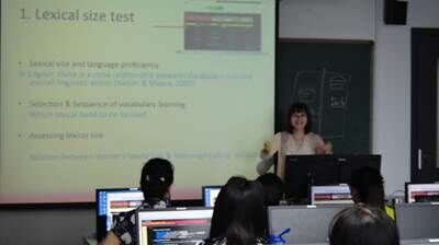 在29日下午的工作坊中,二位专家现场向听众展示了通过向被试采访,被试互问等系列任务活动收集数据的方法,模拟了可加工理论的实证性实验流程,并对在场师生培训了在本实验中的数据处理方法。在一天的培训之后,参与工作坊的师生与两位专家就实验问题进行了热烈的讨论。
