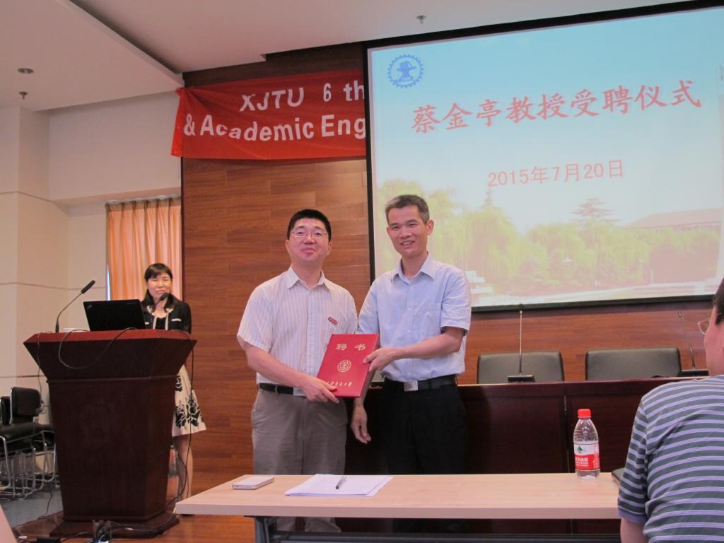 兼职教授”聘书,并为蔡教授佩戴交大校徽。蔡教授坦言非常高兴成为西交大外语学院的一员,并表示“坚决完成学院交给的任务”。