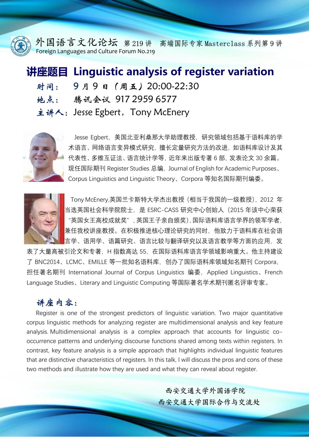 主讲人 Jesse Egbert, Tony McEnery
