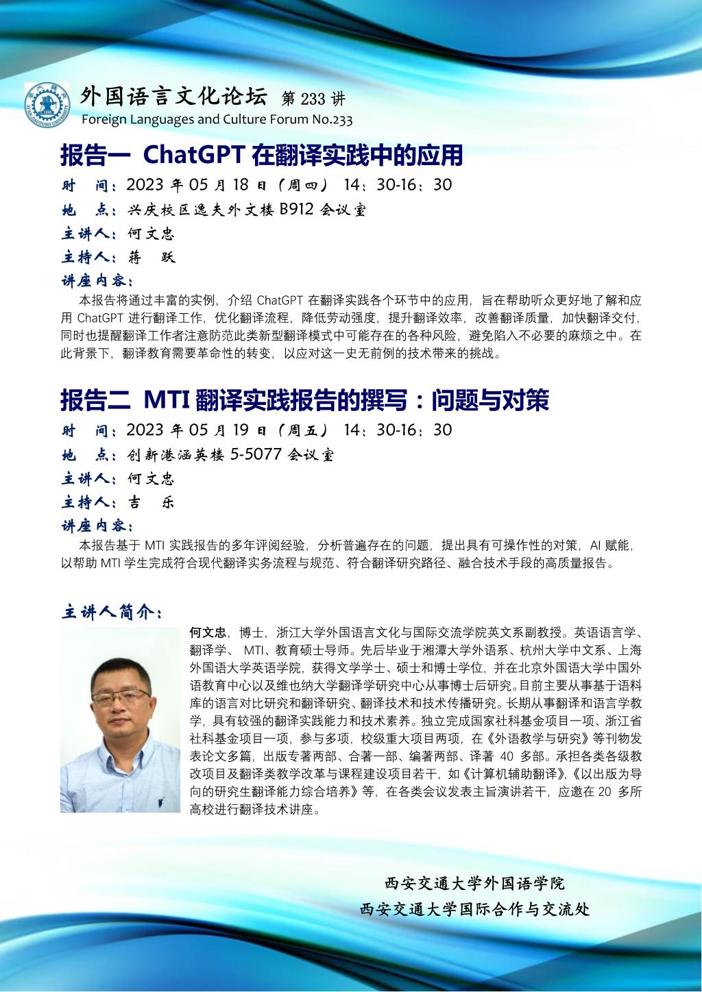 时间 2023年05月18日(周四) 14:30-16:30 地点 兴庆校区逸夫外文楼B912会议室