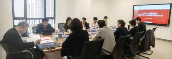 翻译中心常务副主任王非、MTI教育中心主任吉乐、副主任许梅和薛杰参加座谈。