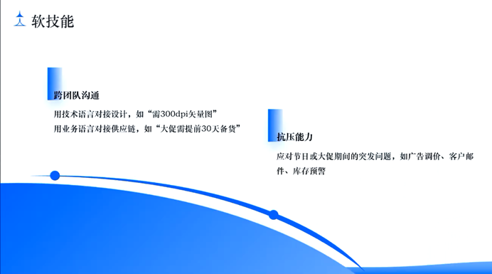 在软技能方面,跨部门协作能力得到了显著的提升,比如,怎样学会并运用专业性语言与设计团队进行需求的沟通、与供应链团队协调计划。同时,在应对大促等高压场景时,她也锻炼了多任务处理的能力以及危机应对的能力。并且,日常的运营复盘工作也使她养成了持续改进的工作习惯。