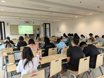 第二场讲座由中国外文局翻译院副院长王飞主讲,他以《我国翻译人才评价体系浅析》为题,系统梳理了翻译人才评价机制的演进脉络与未来趋势。他从国家战略需求切入,回顾了从传统职称评审到CATTI考试制度化、专业化的发展历程,解析现行评价体系的框架设计。针对技术变革的冲击,他指出:“AI不会取代译者,但掌握技术的译者将取代固守传统模式的同行。”翻译人才需锚定外语、专业、文化、技术“四位一体”的努力方向,关注医药卫生、国际传播、涉外法治等新兴领域,在技术浪潮中筑牢核心竞争力。他鼓励高校教师积极参加翻译系列职业资格认定,为翻译专业学生提出若干CATTI备考建议。