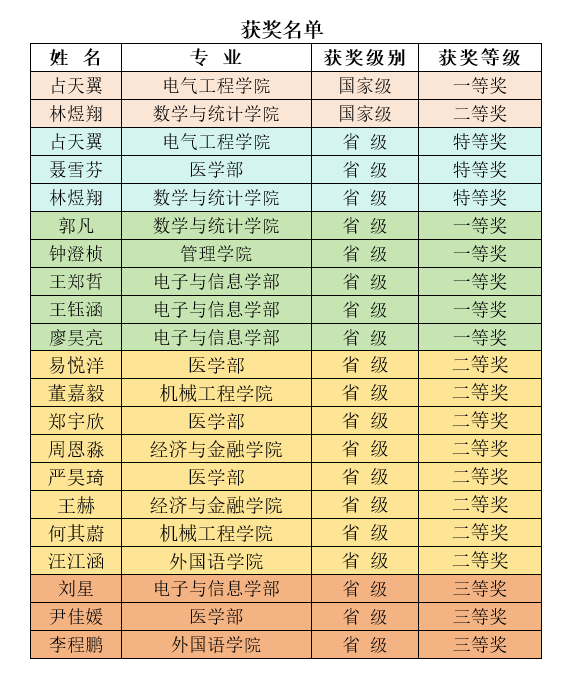 电气工程学院占天翼同学荣获国赛一等奖、数学与统计学院林煜翔同学获得国赛二等奖。