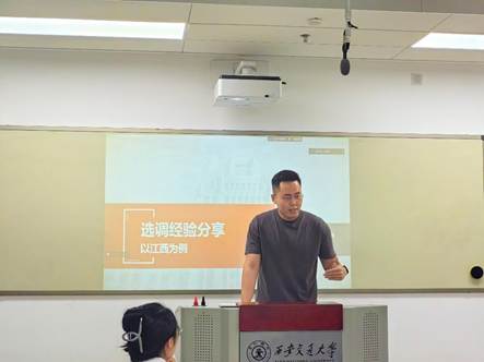 2022级英语笔译专业研究生鲍均鑫、盛世涛、刘宇彤三位同学担任主讲嘉宾。三位同学围绕选调生考试,从政策解读、报考条件、选岗建议、笔面备考策略、考察与体检等方面展开全面分享。