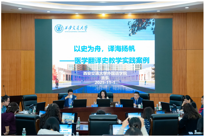 参赛团队深耕教学一线,聚焦翻译实践中的核心痛点,将交叉融合、AI技术应用、国际传播等前沿元素融入案例设计,形成了兼具理论深度与实践价值的教学成果。其中,笔译组案例(吉乐老师团队)精准对接医学行业需求,在借助翻译史案例提升综合素养方面展现出独特创新;口译组案例(许梅老师团队)则通过沉浸式实训、多场景模拟等教学模式,有效提升学生的临场应变与跨文化沟通能力。吉乐老师还受邀在笔译组平行论坛做了题为“以史为舟,译海扬帆——医学翻译史教学实践案例”的汇报展示,分享了蘑菇视频