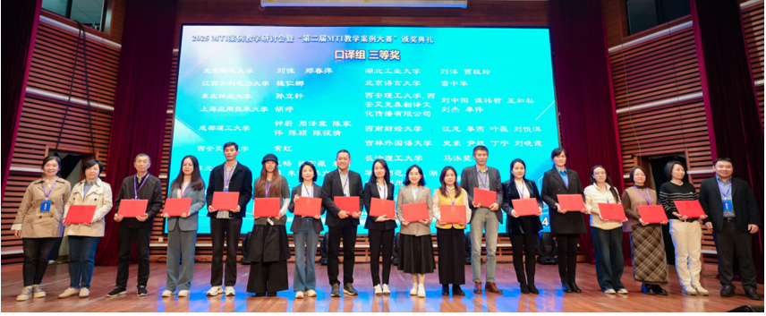 MTI教育中心持续推进教学改革的重要成果。近年来,中心紧跟翻译行业数字化转型趋势,构建了“思政引领+技术赋能+交叉创新”三位一体的培养体系,通过校企合作共建实践基地、引入智能翻译教学平台、开设翻译技术专项课程等模式,不断提升教学质量与人才竞争力。未来,MTI教育中心将以此次获奖为契机,进一步深化教学改革,加强与全国高校及企业的交流合作,持续培养适应人工智能时代需求的复合型翻译人才,为翻译专业教育发展与国家语言服务能力建设贡献更大力量。
