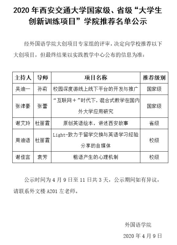 2020年蘑菇视频 国家级、省级“大学生创新训练项目”学院推荐名单公示