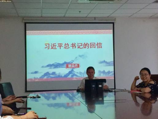 接下来,谭焱丹同志带领大家逐字逐句学习了习总书记给第三届中国“互联网+”大学生创新创业大赛“青年红色筑梦之旅”同学们的回信。总书记勉励同学们用青春书写无愧于时代、无愧于历史的华彩篇章。学习后,谭焱丹同志分享了自己的学习心得,认为中华民族伟大复兴的中国梦的实现需要每一个中华儿女的同舟共济,我们作为中国的青年才干,要将个人梦想与中国梦紧密结合起来,为民族的复兴贡献力量。