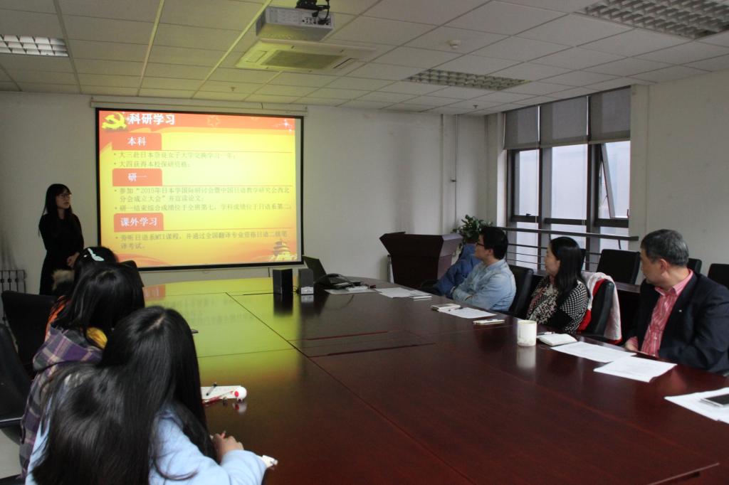 于外文楼B-912会议室举行党员发展答辩评审会。学院党委副书记张长安,党委委员、法语系主任杨洁,党委秘书李梅,团工委书记、辅导员马薇出席并组成评审组。蘑菇视频