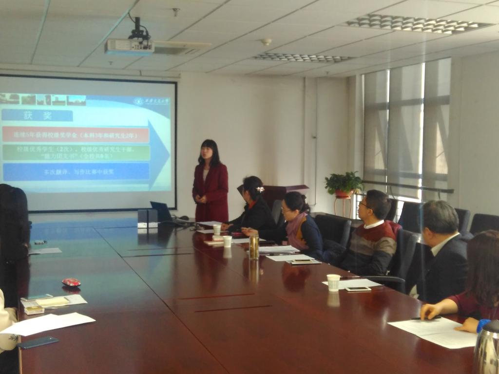 于外文楼B-912会议室召开毕业研究生表彰奖励答辩评审会。学院党委副书记、副院长张长安教授,学术型研究生导师马晓梅教授、MTI翻译硕士导师王非副教授、研究生教学秘书杨卫宁以及辅导员马薇组成答辩评审组。硕3051班、硕4103班共11位研究生参加答辩。评审会由马薇老师主持。
