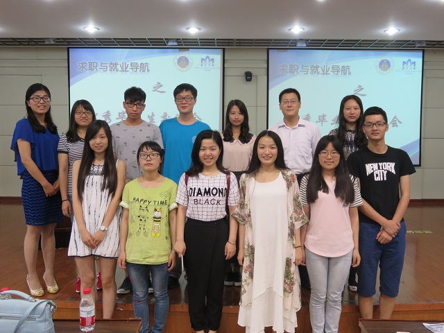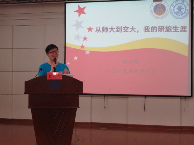 报告会上,他以“从师大到交大,我的研旅生涯”为题做了主题发言。首先,他对师大四年的培养表达了感激之情,“阔别一年,有幸再次回到师大,见到母院的一草一木,十分亲切友好和自然”,他如是感慨道。随后,他结合来到交大研究生近一年的学习成长历程,从课堂学习、课外实践、学生工作及生活等几个层面,图文并茂地展现了他在交大的成长收获。结合所学翻译专业,他又对学校研究生MTI方向专业设置及情况做了相关介绍,并对MTI特色的医学翻译做了介绍。奋斗的青春最美丽,他鼓励母院的学弟学妹们树立远大理想,珍惜光阴,倍加努力,以时不我待的心迎接挑战、战胜困难,走好走稳脚下的路。职行天下,规划你我。立足于学生普遍关心的职业生涯规划问题,他建议在场同学做好规划,多寻找实习实践,在课外参与中争取主动,积极走出校园,在务实的基础上学会灵活“推销”自己,做与市场接轨适应的明智选择。整个会场反响热烈,会后他针对母院学弟学妹们的困惑予以一一解答。