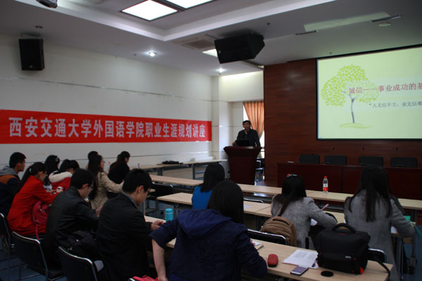 在外文楼B座10楼报告厅举行《诚信——事业成功的基石》讲座,主讲人陕西蕾德曼实业集团有限公司总裁陈健先生同时被聘为蘑菇视频