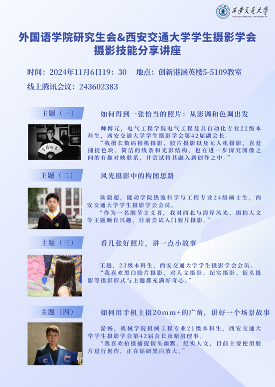 学生摄影学会的小伙伴们前来参加哦!届时嘉宾还会分享如何更好地使用手机拍摄,大家可以一起交流,共同探索光影的魅力~