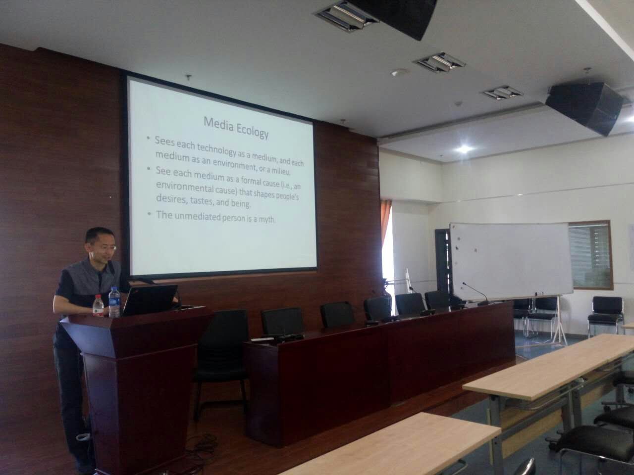 讲座一开始,PeterZhang首先对学院的邀请表示感谢,继而从媒介生态学的概念、研究重点、发展及其对文学的影响关系做了详细介绍,并结合生活中常见的例子,深入透彻地分析了媒介生态学对文学产生的影响。讲座内容翔实,信息量庞大,在场听众表示收获颇丰,获取了许多新知识。