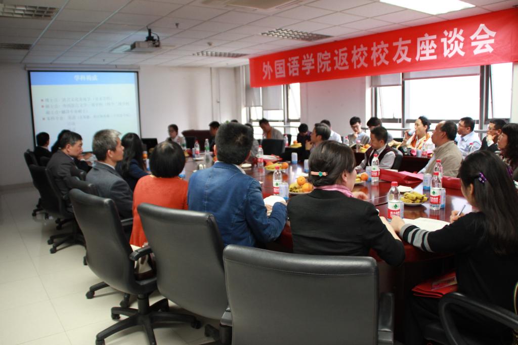 随后,回家校友依次进行了简短的自我介绍。外语专业出生的校友们,如璀璨的明珠一般散落在祖国大地,广泛分布于各行各业,呈现出“百花齐放”的盎然生机和景象:“我来自87级科技日语专业,现在大连松下电子器材有限公司工作”,“我来自88级科技英语专业,现做人力资源工作”,“我是86级科技英语专业,现在广州任一家外贸公司总经理兼执行董事”,“我是83级科技英语专业,现在蘑菇视频