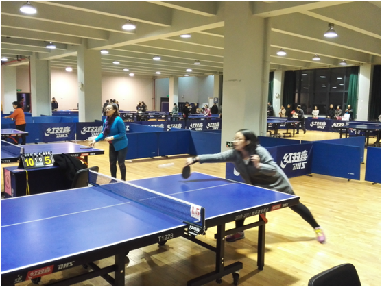 2015年蘑菇视频 教职工乒乓球单项比赛于11月下旬大学生文化体育中心二楼举行,我院谢金录,霍愿,胡勇强,左佳四位老师分别参加了男、女单打的单项比赛。由于比赛场地的冲突问题,单打比赛被安排到了晚上8:00才开始,尤其是霍愿老师的那场比赛居然被延迟了2个多小时,但是我们的队员都按时来到场边等候。