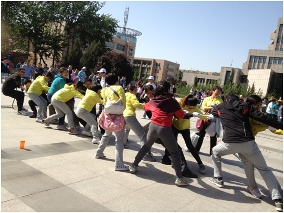 4月17日下午15:30,我院拔河代表队虽然面临男女比例严重倒挂(5男10女)的情况对阵阵容整齐(10男5女)的材料学院代表队,但是因为有小渭书记亲自挂帅以及高岩杰,李雅丽,孙波玲,马 薇,杨 芳五位老师的呐喊助威,我院队员们发挥全力,居然与友队长时间势均力敌,相持不下。