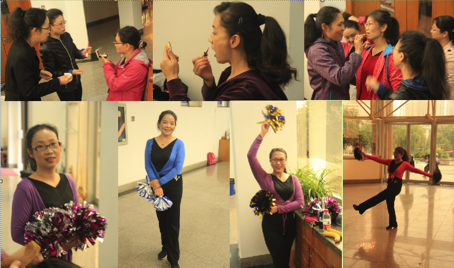 健美操舞比赛是一个集体项目,它需要众人到齐才能排练,由于我们这些队员们基本是由working mothers组成的队伍,日常既要搞教学科研,还要带孩子做饭照顾老人;在征求队员们的练习时间时,困难是明显的,不要说一周5天时间里没有时间交集,就是带上晚上和周末,一周也只有零散的二次“相聚”机会。但是,所有队员的回答是中午、晚上、周末只要有时间交集我们就来,队员们的相互体谅和积极态度充分体现了老师们心中的集体主义精神!