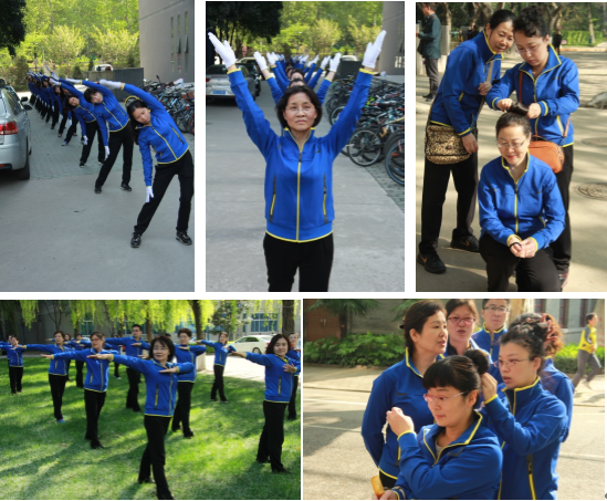 为了不辜负院领导的重托,广播操的队员们更是克服时间没有交集的困难,勤学苦练。在互帮互学的业余练习环节,老队员不仅一遍又一遍地观看新队员的练习视频,而且还要反复观看标准视频,然后十分认真毫不“怜悯”地指出新队员动作上存在的各种问题。有位老队员说,“其实指点别人的同时,也是在无形中鞭策和提高自己”,我们的新队员也是虚心接受,“太中肯了,我后面一定注意纠正”。这种练习方式在时间上起到了事半功倍的效果。在互帮互学的现场练习环节,也是热闹非凡,新队员学习的认真,老队员指导的耐心,整个一个大家庭景象!除了集中训练,在家自学的队员们也十分认真,比赛的成绩就诠释了这点,例如,大学英语的王芳老师,几乎是从零学起,喻老师都不忍请老队员对她进行点评,但是到第三次集训时,其动作的规范性已经俨然像个老队员,这种跨越式进步,想必王老师在下面“自习”时一定下足了功夫。