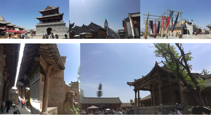 沿着青石小路登上丘陵顶上就是影视基地的建筑群了。要将整部小说里的场景还原在这方圆不到一里的地方也着实不易。县城、白鹿村、教堂、镇妖塔、牌坊、祠堂、粮仓、城墙、民国街道、晚清土路等等建筑全部囊括在这里,仿佛半日便可阅尽渭河平原半世纪变迁的雄奇史诗。