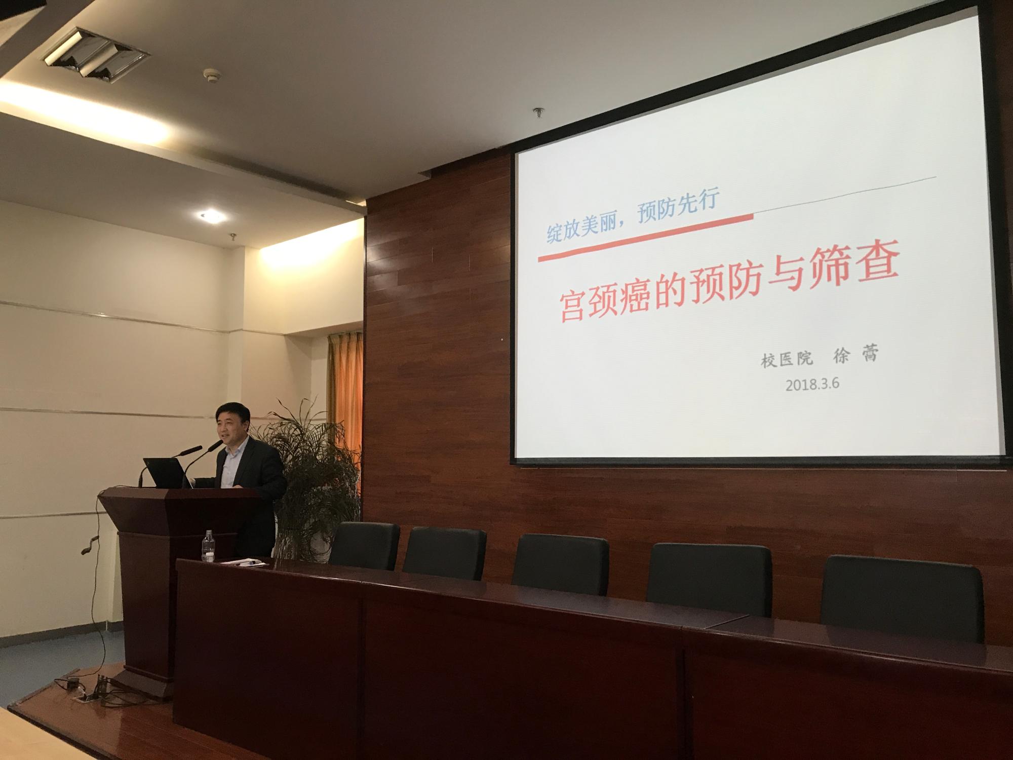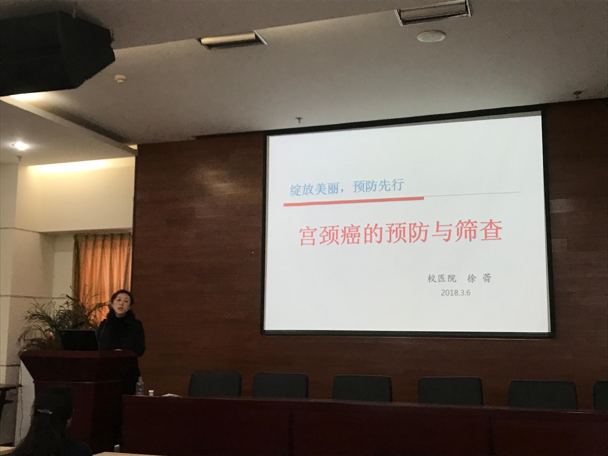 邀请校医院徐蕾副院长为教职工做题为“绽放美丽,预防先行——宫颈癌的预防与筛查”健康知识讲座。讲座由蘑菇视频