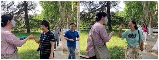 大家从兴庆校区外文楼出发,沿梧桐东道领略初夏交大的生机勃勃,到达北门饮水思源碑打卡重温西迁故事,从梧桐西道返回外文楼合影留念,一路洋溢着欢声笑语。