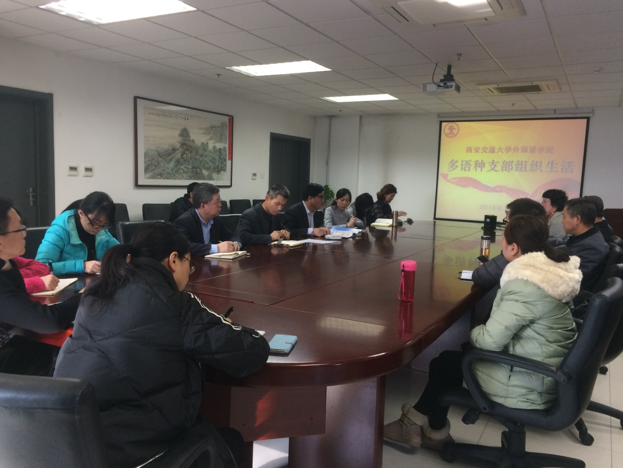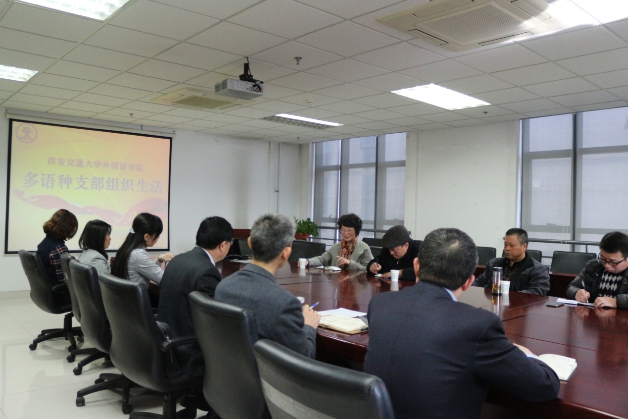 迎来了一批特殊的客人,蓝田县田家炳中学教工党支部党员代表一行5人,在副书记侯晓宁同志的带领下走进外文楼B912会议室,前来参加由多语种党支部发起的联合组织生活会。