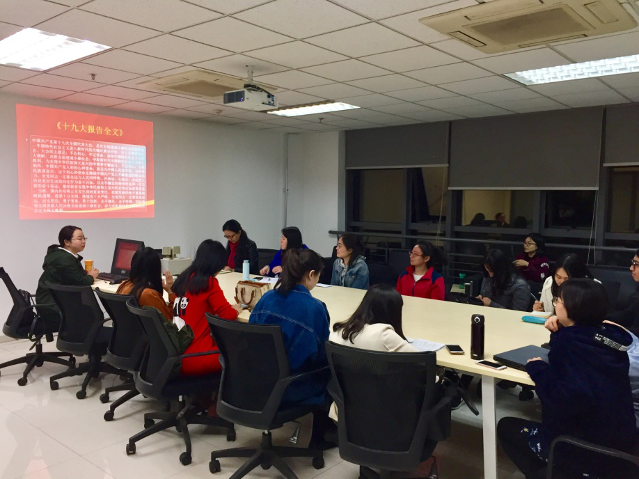 硕2015级党支部全体党员在外文楼B711会议室学习研讨十九大精神。会议由支部书记余碧燕主持。学院党委副书记许明老师参加了这次组织生活会。