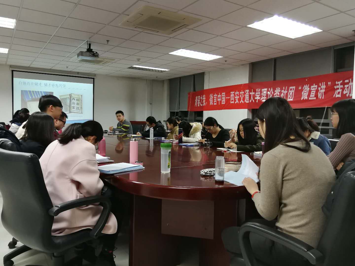 “筑梦社”开展的十九大精神微宣讲在外文楼B912会议室举行,来自蘑菇视频
