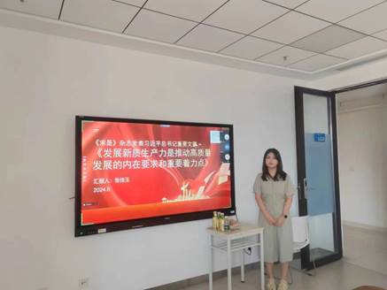 为发展新质生产力所提出的举措以及做出的努力。党员赵晶则介绍了我国的就业相关政策,强调了党和政府对就业工作的重视,以及国家在完善重点群体就业支持方面所做的努力。