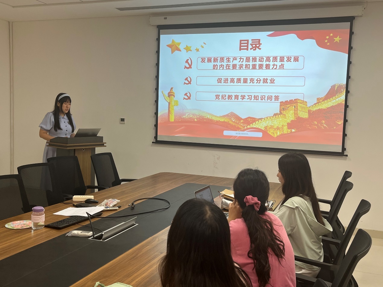 首先,支部成员围绕《求是》杂志发表的习近平总书记重要文章《发展新质生产力是推动高质量发展的内在要求和重要着力点》开展理论学习,领悟习近平总书记关于发展新质生产力的重要论述,深入解读新质生产力的科学内涵、核心要素和实践要求,对新质生产力理论知识系统梳理,也结合当前经济社会发展的实际,分析新质生产力在推动高质量发展中的重要作用。