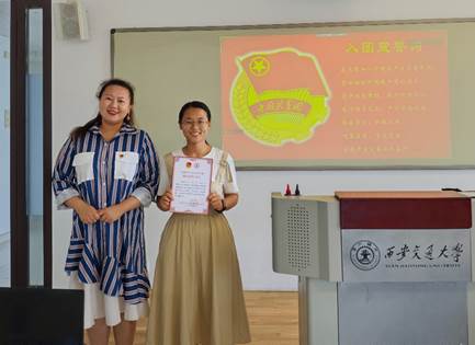仪式在激昂的团歌声中拉开序幕。姜家奇宣读了超龄团员名单,超龄团员刘书凝分享了团内经历与离团感悟。随后,由博士研究生团支部组织委员巩楠同志领誓,全体青年重温入团誓词。姜家奇代表博士研究生党支部对刘书凝同志寄语,希望她离团不离心,坚定理想信念,用实际行动诠释青年的风采和担当。青年党员代表黄红兵同志表示,刘书凝同志不仅具有卓越的服务意识,还充分彰显了团员的先锋模范作用,在今后的学习工作中要不忘初心、谨记嘱托,时刻保持青春的干劲和热情,勇攀高峰。仪式上,薛璇玑老师为超龄离团青年摘下团徽,赠送党章,并颁发离团纪念证。本次离团仪式让离团青年深切感受到了团组织的温暖,为其团员生涯画上了圆满的句号,能够激励其志存高远,脚踏实地,勇敢肩负起时代赋予的重任。