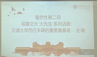 接下来,团员们观看了交大“大先生”系列话剧——关于彭康先生的故事。彭康先生作为交通大学西迁的重要奠基者,以无私奉献、艰苦创业的精神为大家树立了榜样,令团员们深受鼓舞,进一步理解了西迁精神的深刻内涵。