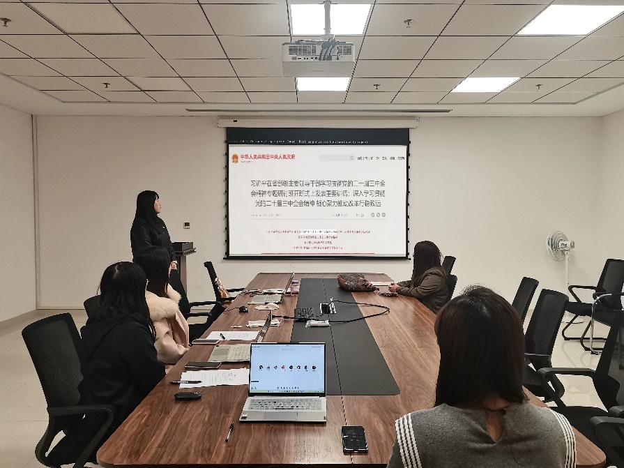硕2118班党支部在涵英楼5-5077会议室举办了“学习贯彻党的二十届三中全会精神”组织生活,本次活动由支部书记于欣欣主持,支部全体成员积极参与。
