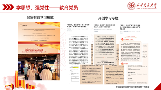 接着,支部书记贾柯婧同志进行2024年度工作汇报,全面总结了过去一年支部工作的丰硕成果。从思想建设到实际操作,党支部在不断加强党员教育、提升政治素养方面都取得了显著成效。通过定期组织党员大会、支部委员会和党课等形式,党支部紧密围绕党的理论创新进行学习,注重双语学习栏目等创新形式的运用,切实提高了党员的政治敏锐度与理论水平。同时,支部在管理方面实施了积分制和点对点帮扶机制,推动了党员的自我管理与自我提升。在实践活动方面,开展了多项宣传活动,并组织支部共建活动,广泛传播党的声音,收获了党员和群众的积极反馈。各位党员们在学业、竞赛、志愿服务等方面的表现同样可圈可点,体现出了党员的责任和担当。