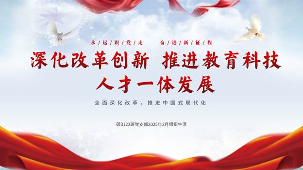 硕3122班党支部开展主题为“深化改革创新,推进教育科技人才一体发展“的组织生活,支部党员和积极分子参加会议,支部书记安欣宇主持会议。