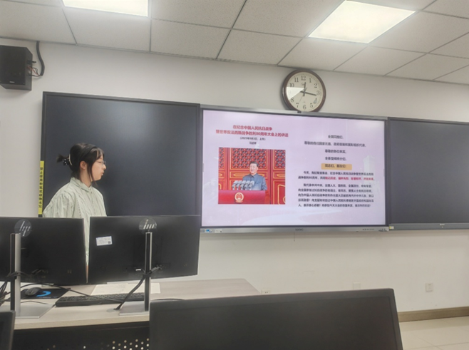 以系统梳理习近平总书记讲话的核心内容为基准点,她逐层阐释“铭记历史、缅怀先烈、珍爱和平、开创未来”的重大意义;立足“一带一路”倡议与建军百年目标,号召大家继承和发扬不畏强暴、坚韧不拔的民族气节,弘扬伟大抗战精神,坚定不移走和平发展道路,积极投身中华民族伟大复兴的宏伟征程。
