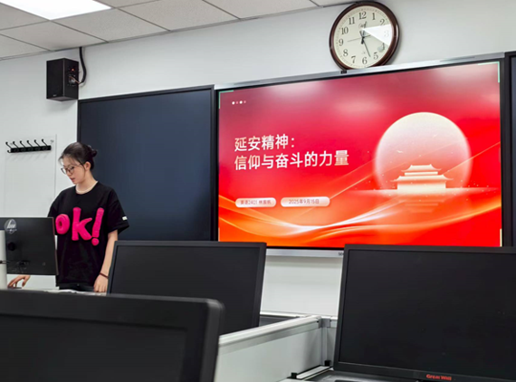 最后,林宸帆同学以“弘扬延安精神 赓续红色血脉”为主题作领学汇报。她从理论渊源、实践根基两个维度阐释延安精神核心要义——“坚定正确的政治方向、解放思想实事求是的思想路线、全心全意为人民服务的根本宗旨、自力更生艰苦奋斗的创业精神”,帮助与会党员深化对延安精神时代价值认知。接着,她结合三五九旅南泥湾垦荒壮举和张思德同志为人民服务的精神为范例,将延安精神具象化,推动其在新时代的发展与传承,号召新一代优秀青年汲取信仰的力量,对标党规党章找寻党性差距,以“延安作风”校准事业坐标,将“艰苦奋斗”作为行动指南,在强国建设,民族复兴新征程上挺膺担当、砥砺奋进。