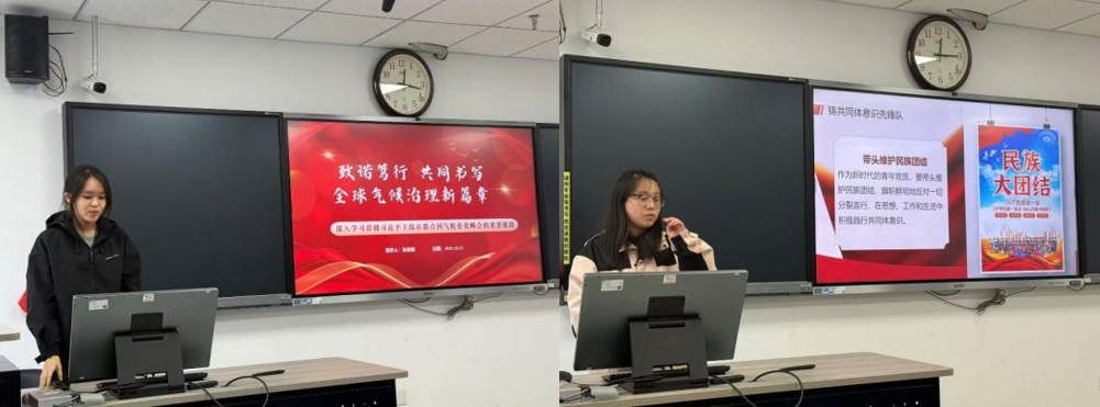 理论领学后,王一璇同学分享心得:新疆稳定发展对国家大局的重要性,青年需以专业所长讲好新疆故事、守护民族团结。气候治理专题则展现了中国在全球生态议题中的担当,从《巴黎协定》十周年的关键节点,到2035年全面绿色转型的明确目标,彰显了大国责任。作为青年,既要树立绿